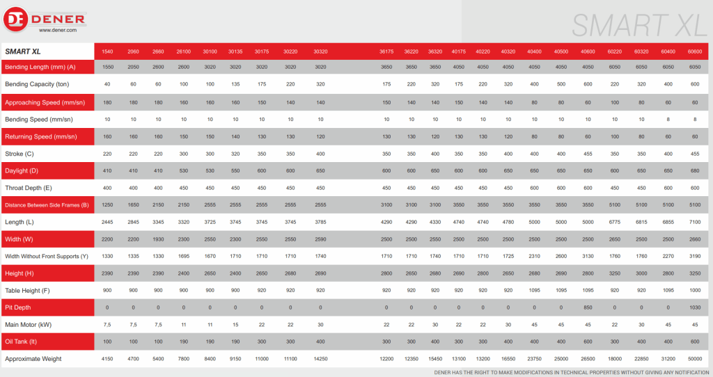 Dener SMART XL CNC economical, stronger, faster accurate new model. Smart XL Press brake targets small and medium size sheet metal working companies. The most important features of Dener Smart XL are; faster working speeds, higher bending power , deeper throat depth, higher stroke and daylight.